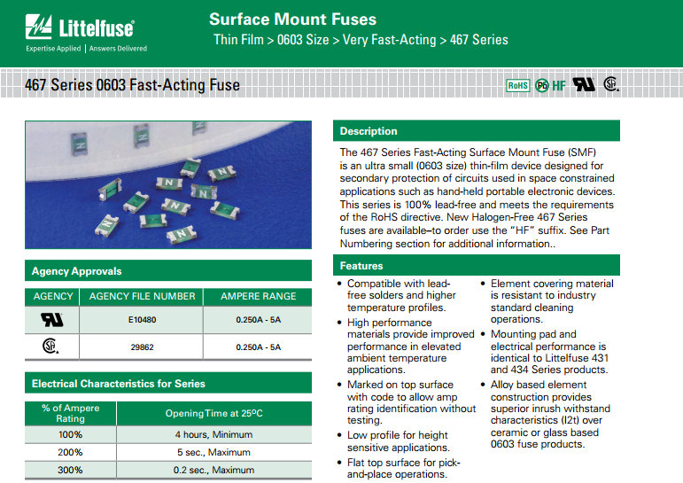 467 系列 - SlimLine無鉛0603特快熔斷薄膜保險絲