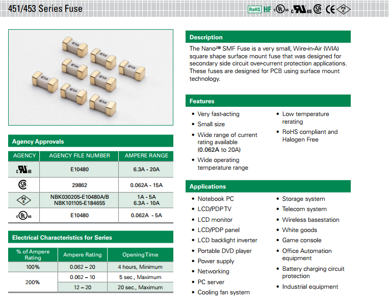 451 系列 - NANO2?快熔超小型表面貼裝保險絲