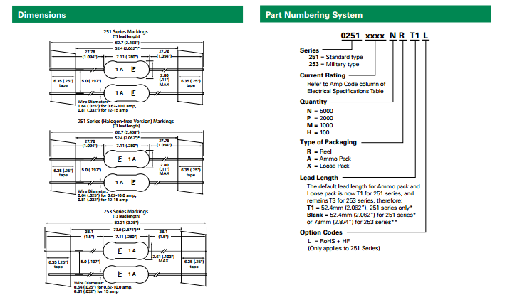 251 系列 - PICO? II特快熔斷超小型軸向引線式保險絲