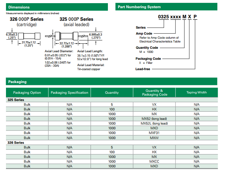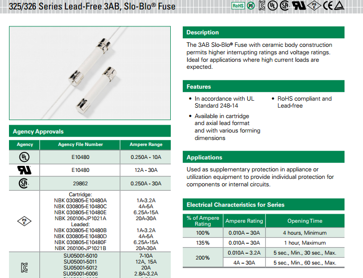 325 系列 - 3AB Slo-Blo? 軸向引線陶瓷管保險絲