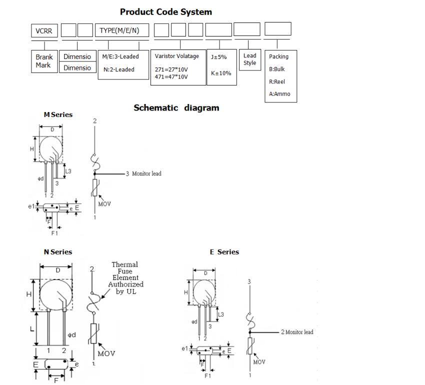 ?壓敏電壓范圍從(200V-1800V) ?符合RoHS,Reach標準,無鉛 ?專利的集成熱保護裝置 - ?旨在促進符合UL1449第3版SPD產品 ?高峰值浪涌電流額定值高達10kA ?波可焊 ?標準引線形式和間距選項 ?低泄漏 ?-55°C至+ 85°C的工作溫度范圍