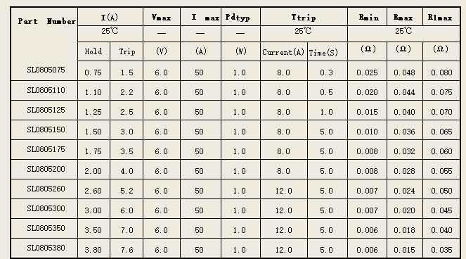 SL1206 低阻自恢復(fù)保險(xiǎn)絲