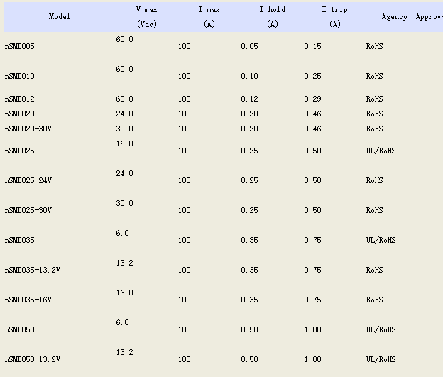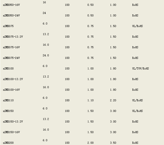 關鍵字:nSMD (1206) Series SMD貼片自恢復保險絲