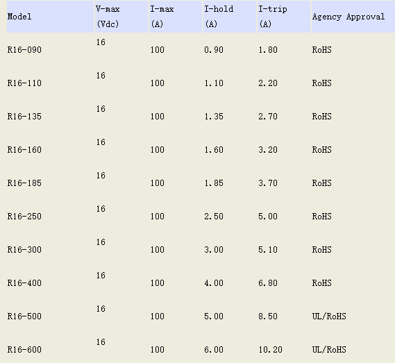 關鍵字:R16 插件 Series R插件自恢復保險絲