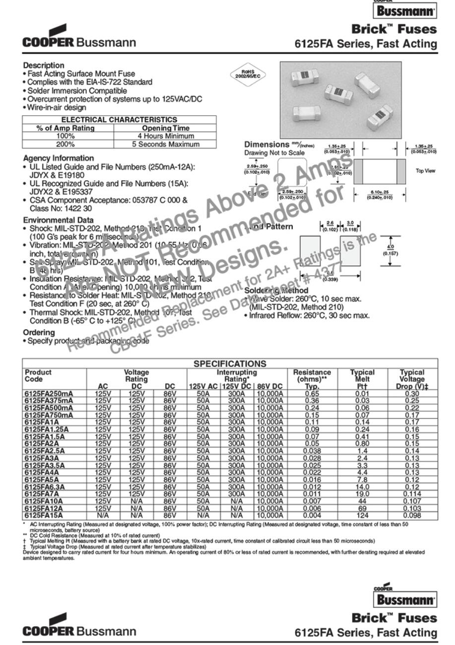 BUSSMANN 6125FA 貼片保險絲 一次性 SMD貼片保險絲