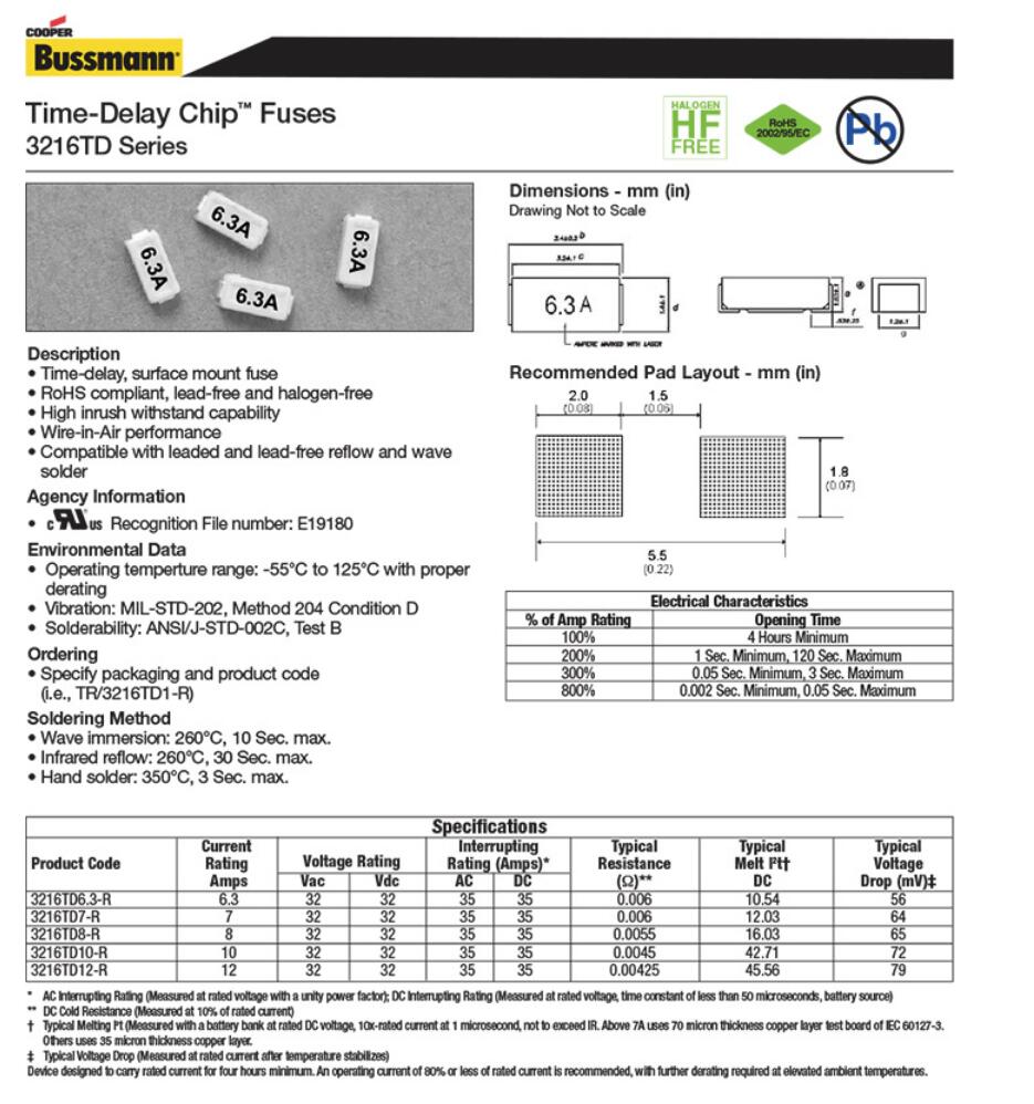 BUSSMANN 6125FA 貼片保險絲 一次性 SMD貼片保險絲
