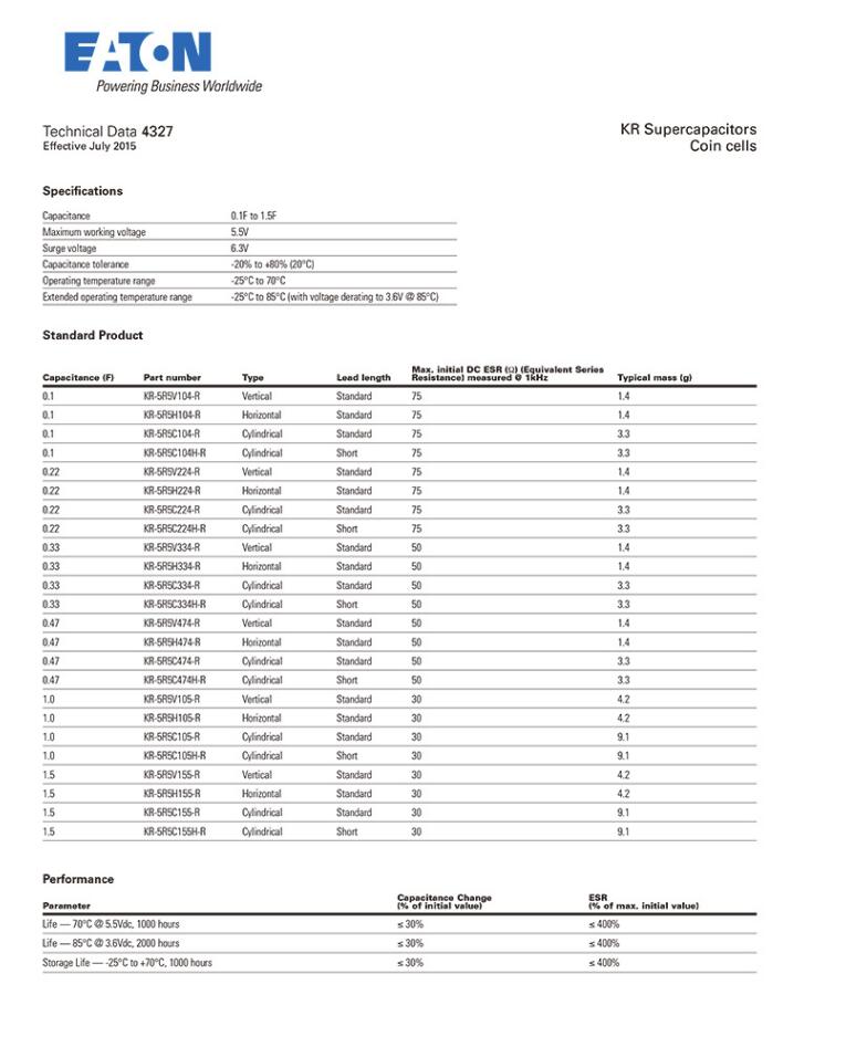 Bussmann KR-5R5V H C 104 224 334 471 105 155 超級電容