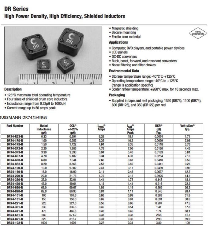 BUSSMANN DR74系列電感