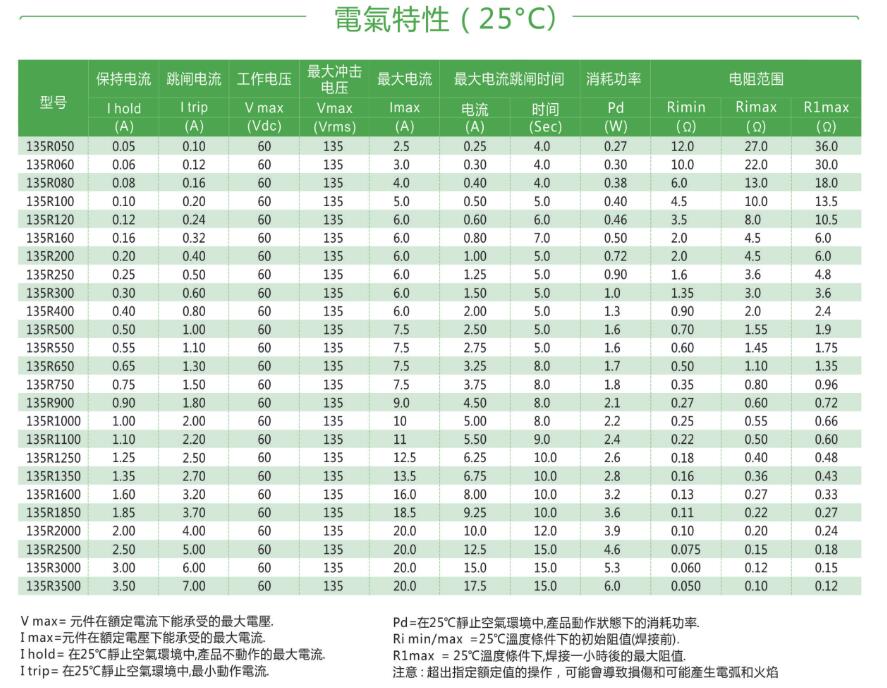 135V自恢復保險絲