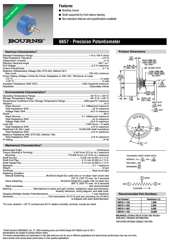 BOURNS單轉型精密電位器6657