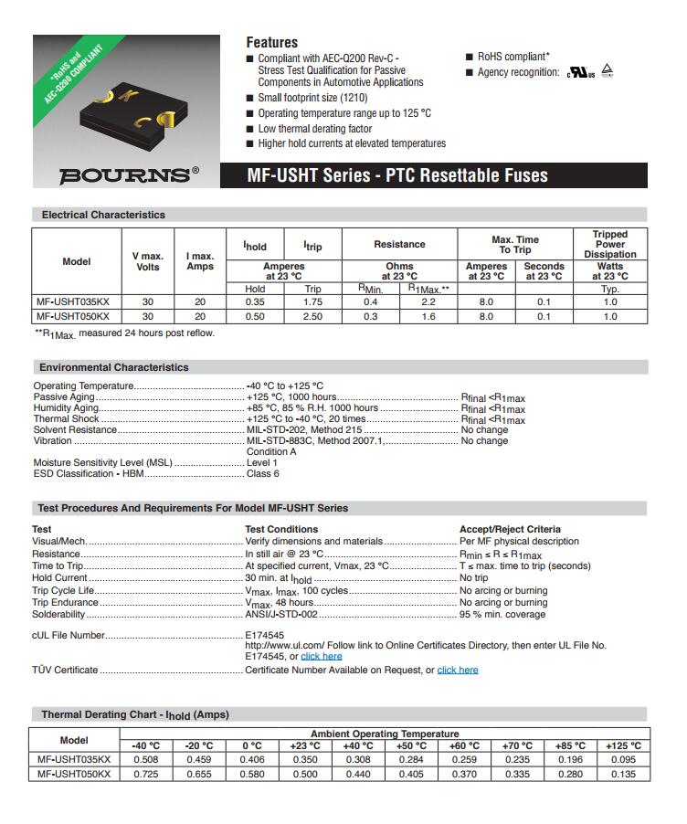 BOURNS 車規保險絲 MF-USHT AEC-Q200認證