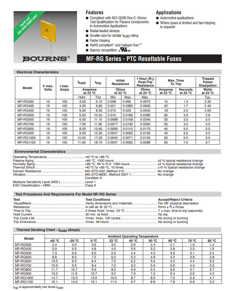 BOURNS 車規保險絲 MF-RG AEC-Q200認證