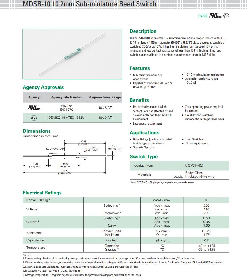 FLEX-14 系列 - 14mm磁簧開關|HAMLIN|干簧管