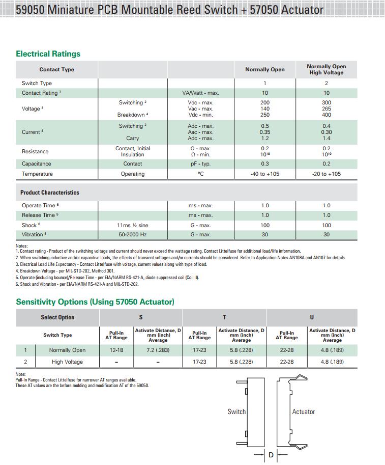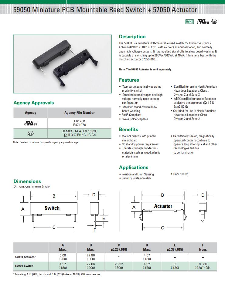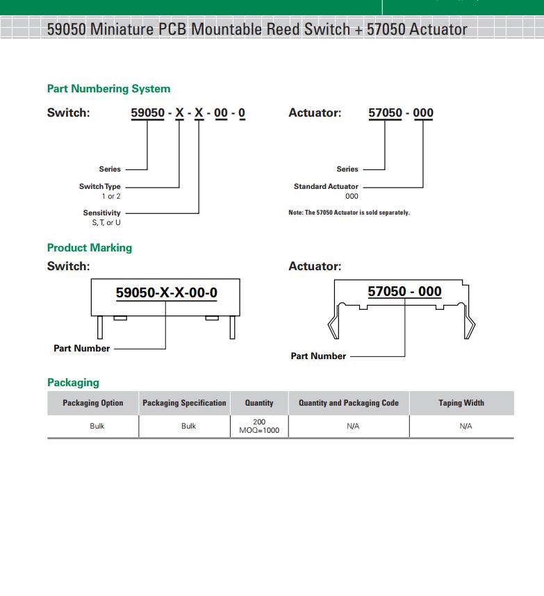 關鍵字:59050 系列 - PCB封裝包覆成型磁簧開關|HAMLIN|干簧管
