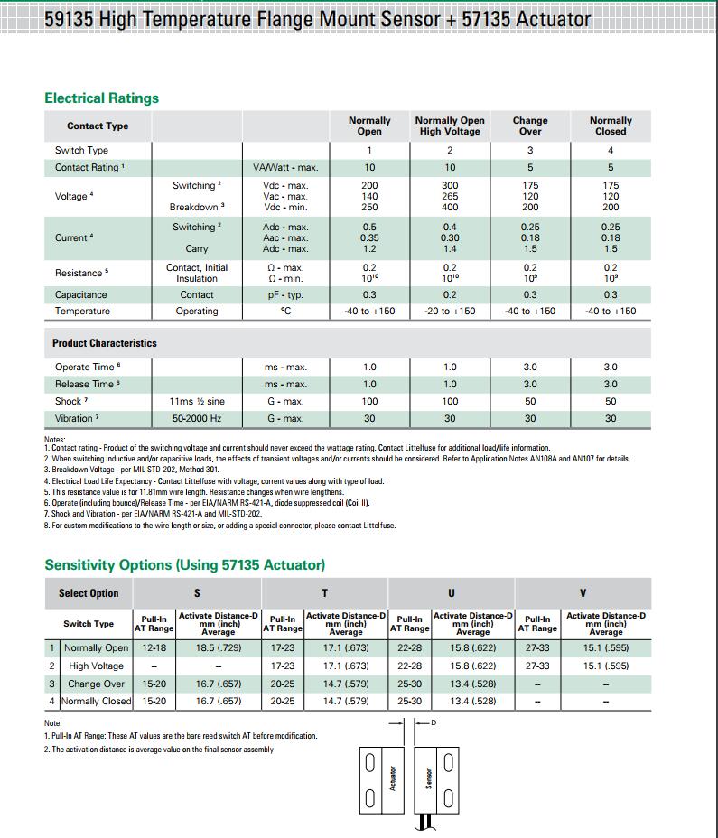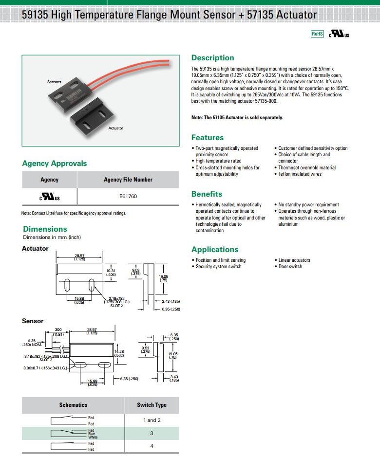 關鍵字:59135 系列 - 高溫法蘭安裝式磁簧傳感器