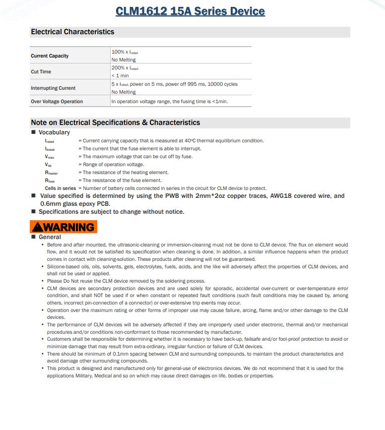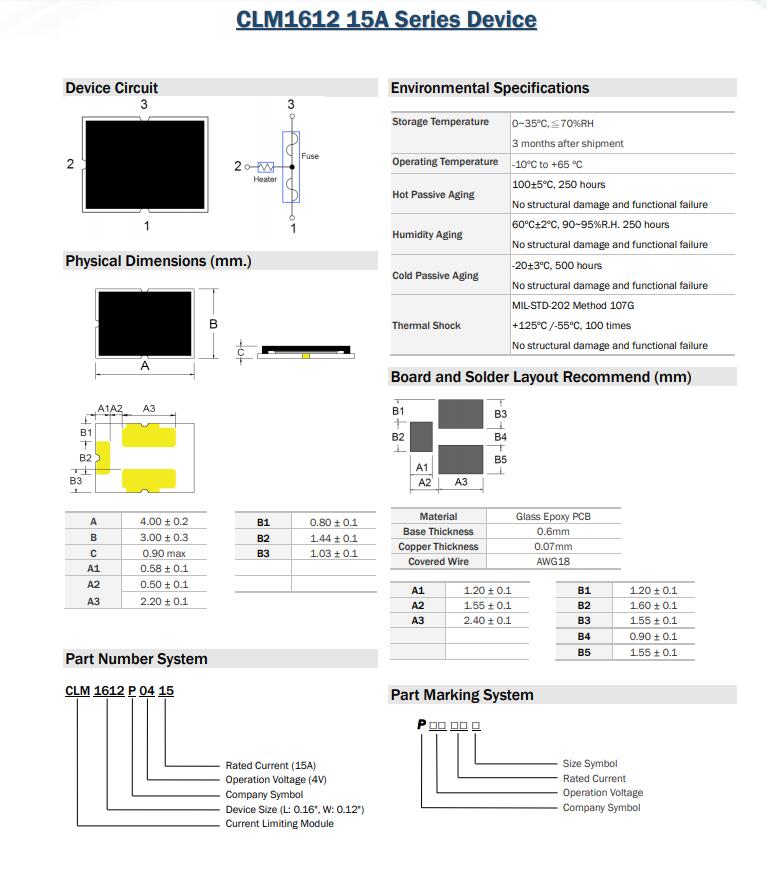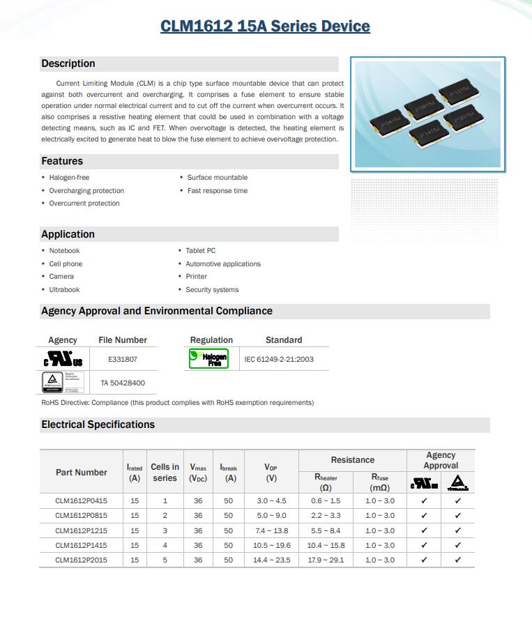 關鍵字:CLM1612 15A Series Device 三端保險絲