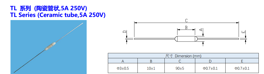陶瓷溫度保險(xiǎn)絲:TL 系列 (陶瓷管狀,5A 250V)